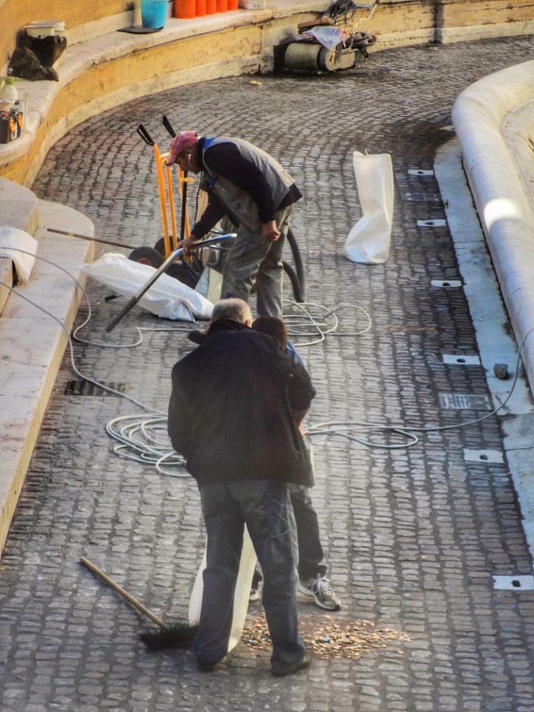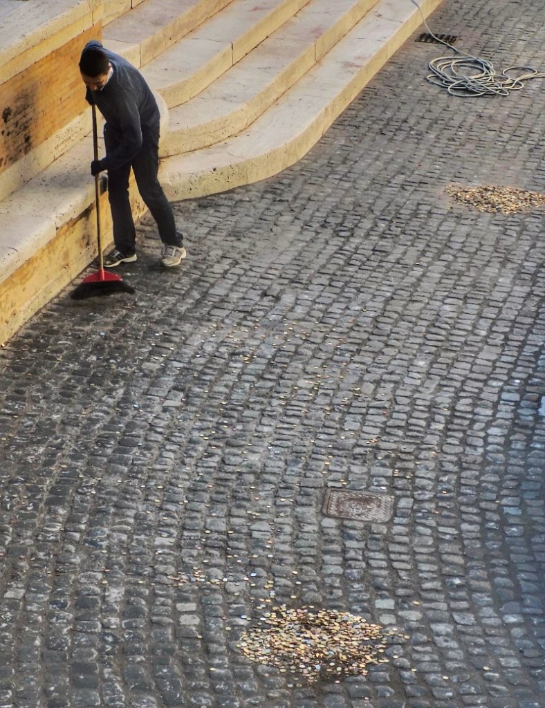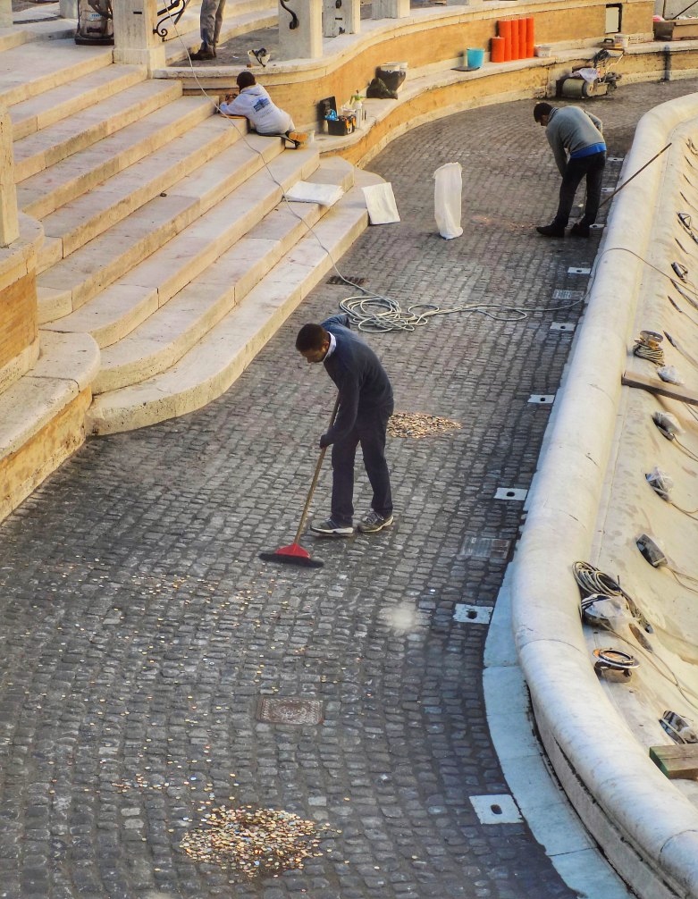 Szó szerint értendő, hogy besöprik a lóvét. Évente kb. 1,5 millió euró gyűlik össze a Trevi-kútba dobált aprópénzekből. Róma városa ezt a Katolikus Karitásznak adja, akik szegények és hajléktalanok segítésére fordítják.