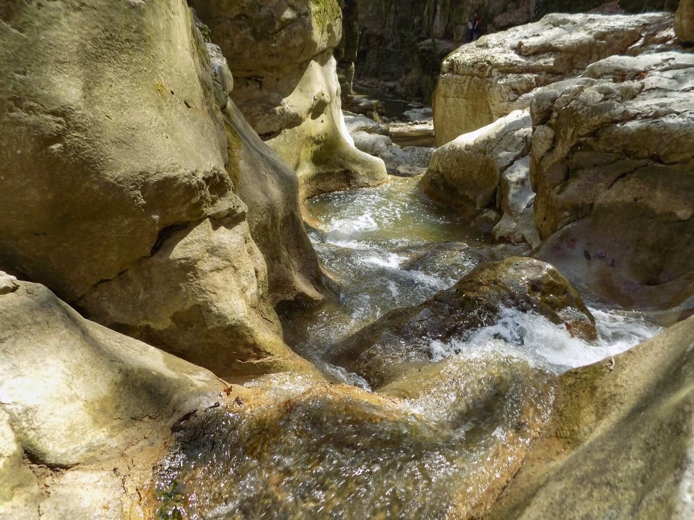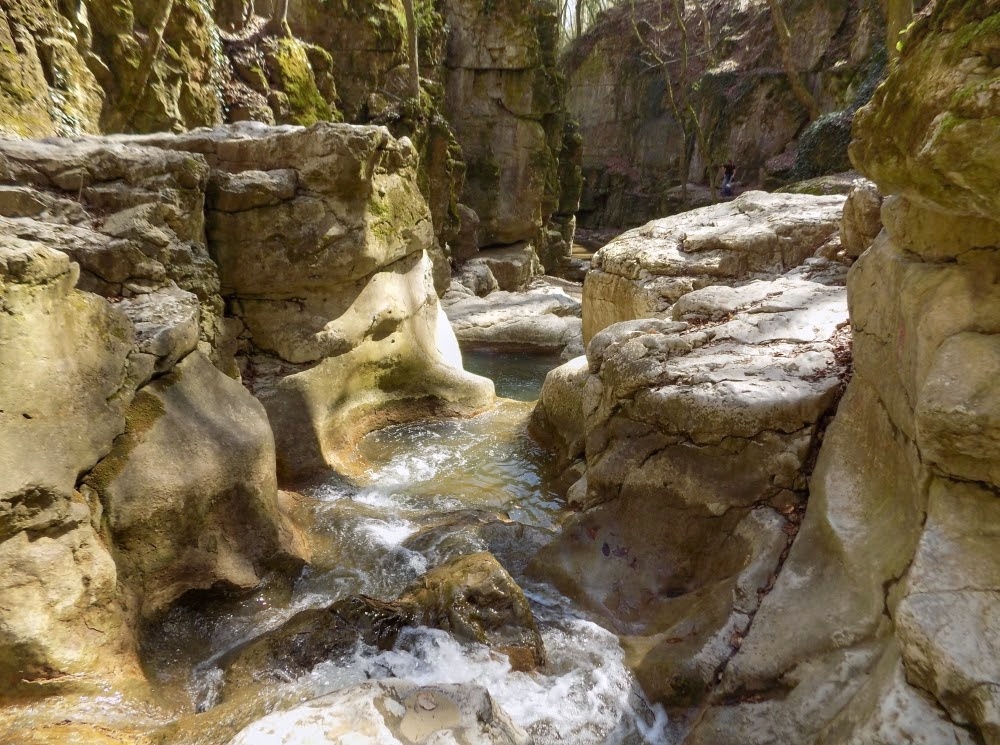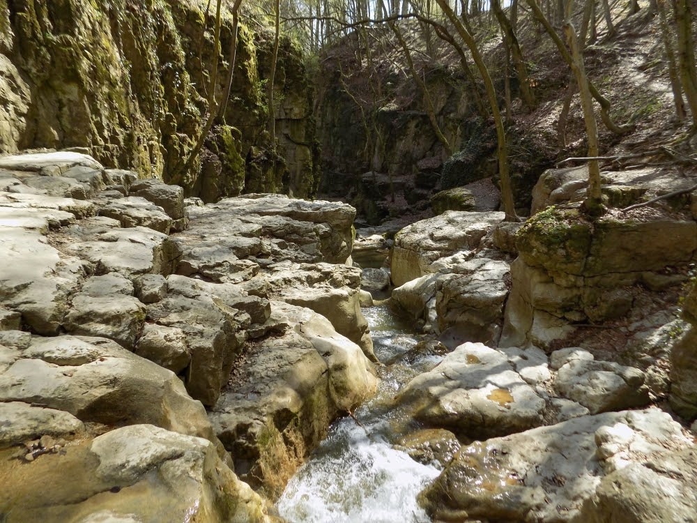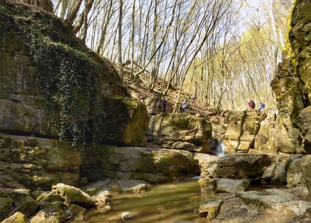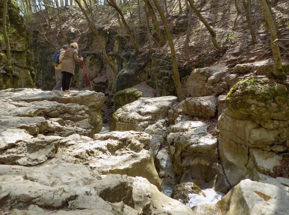 Innen a Római-fürdő könnyű, egy-másfél órás erdei séta a piros turistaúton. (Akad útközben jó kis medvehagyma-lelőhely is.) A szurdok a sziklafalra tapadva mászható, a víz még hideg, de ha csak ennyi a Gaja baja, akkor jók vagyunk.