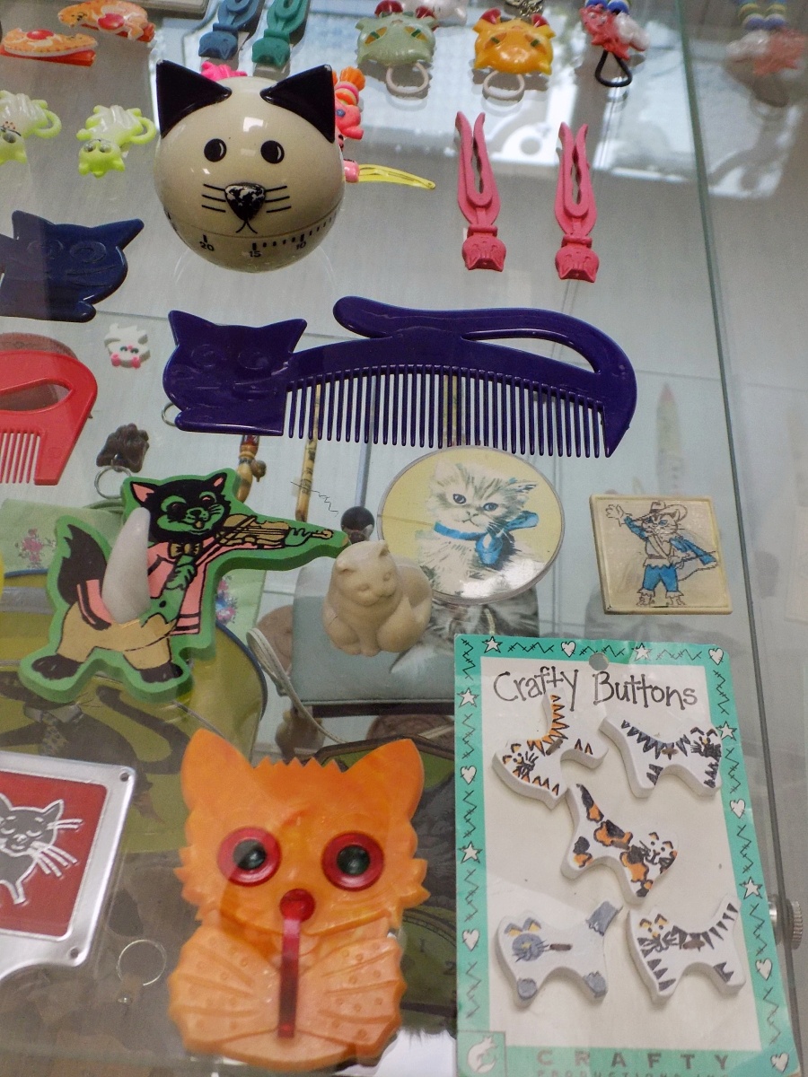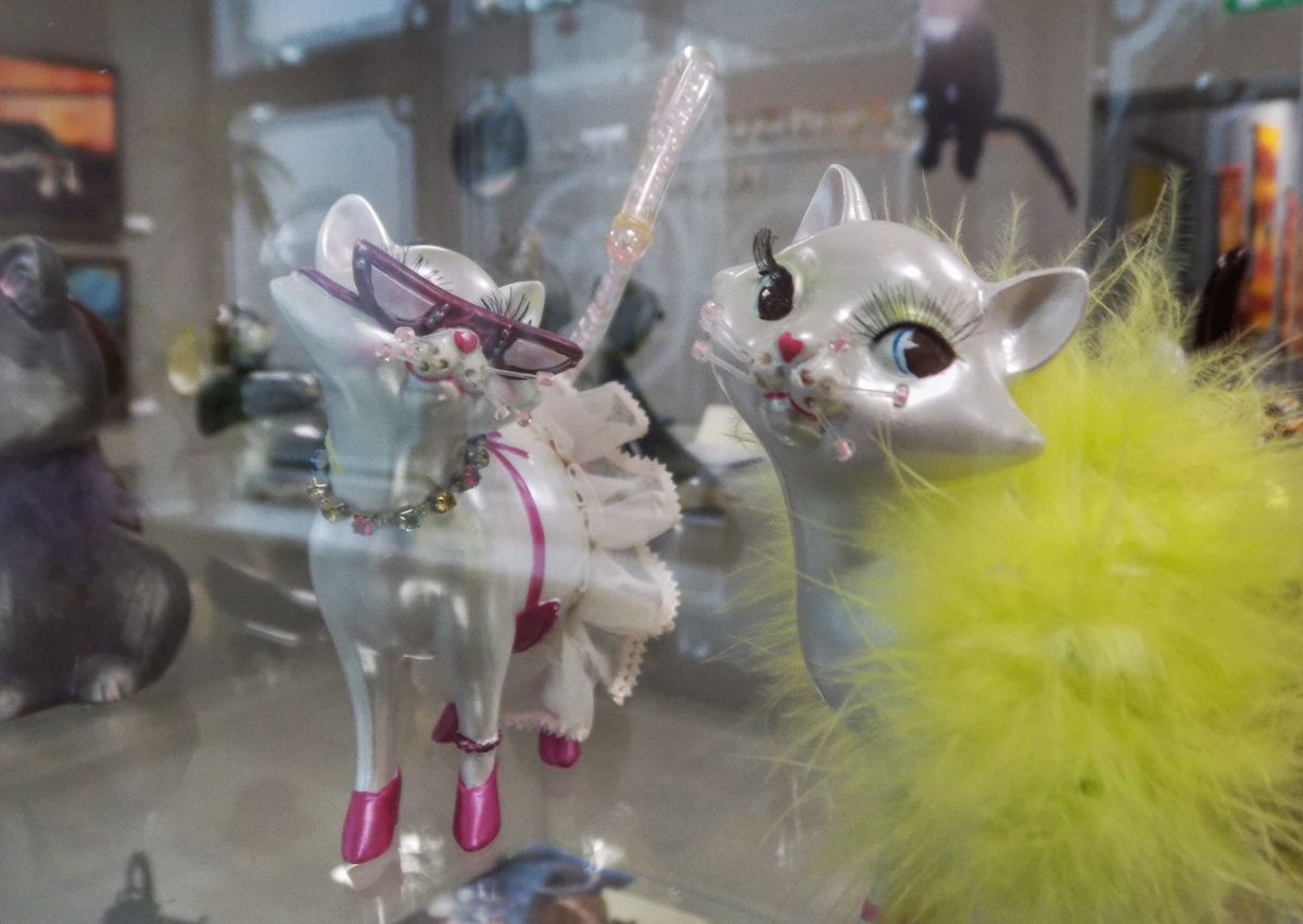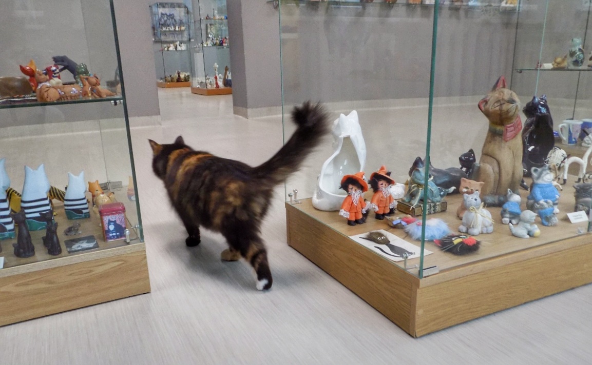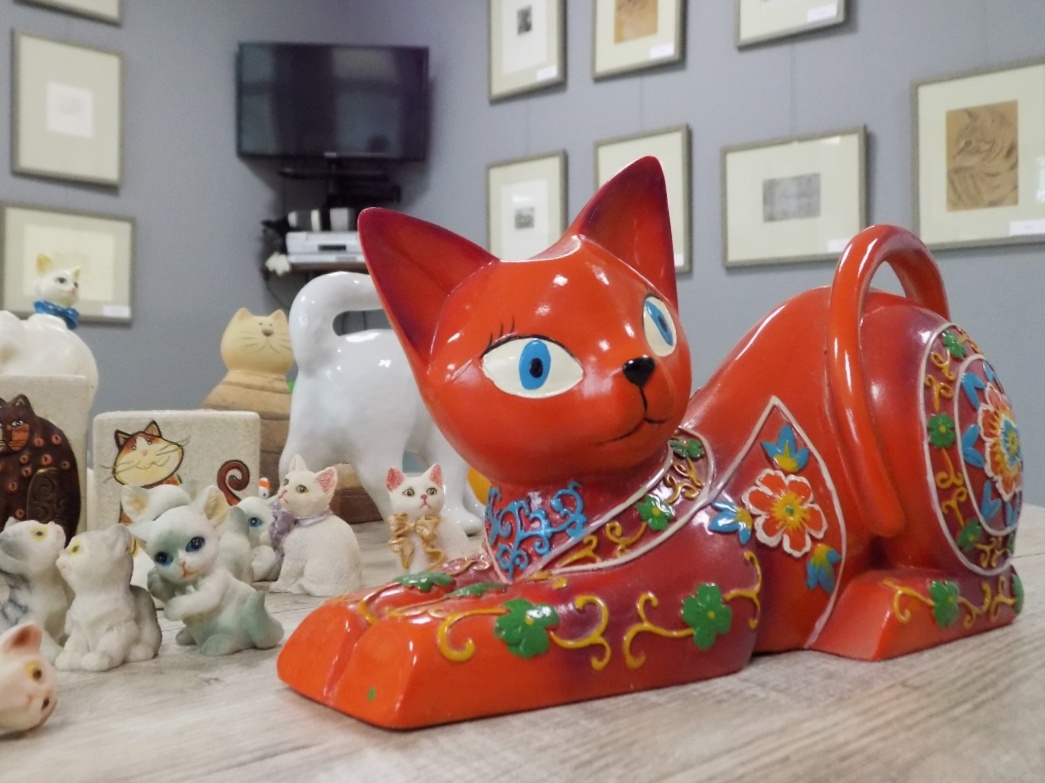 Ma már több mint négyezer cica van a múzeumban: porcelánból, kristályból, üvegből, borostyánból, márványból, fából, fémből, akármiből* készült ajándéktárgyak, festmények, képzőművészet, könyvek, bélyegek, képeslapok, edények, játékok… De megjelennek a macskák a színes ólomüvegeken, díszkorlátokon, lámpákon és egyéb berendezési tárgyakon. Három terem van tele a macskás gyűjteménnyel, a világ minden tájáról (Magyarországról is).
