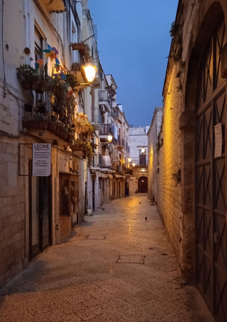 Bari Vecchia, azaz Bari óvárosának girbe-gurba sikátoraiban hosszasan keressük a szállást, részint címmel (felejtős), részint GPS-szel (össze-vissza ugrál a jel). Végül fordítva jön a megoldás: a szálláshely embere talál meg minket.