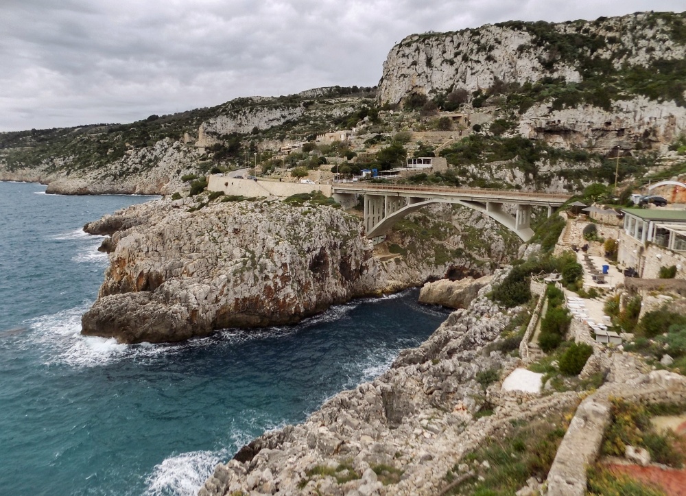 Sziklás szakasz fordítási gyakorlattal a “csizma sarkából”: ez a Ponte Ciolo, a Szarka-híd. A helyi nyelvjárásban a szarka (a mainstream olasz gazza helyett) ciola, de a ciola használatos hímtag értelemben is. Példamondat: Sokat akar a szarka, de nem bírja a farka.