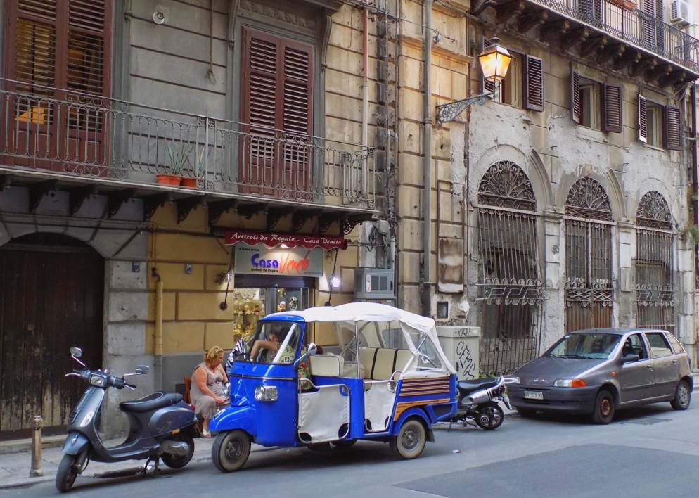 A zajongás már egészen kora reggel elkezdődik, konkrétan erre ébredünk a hostelben. A palermóiak akkor is hangosak, ha nem közlekednek… A nap nagy részében az utcán élnek, ücsörögnek a házak előtt, járdaszegélyeken. Tehetik, Szicílián olyan jó idő van egész évben, hogy sok házban nincs is kiépítve fűtés.