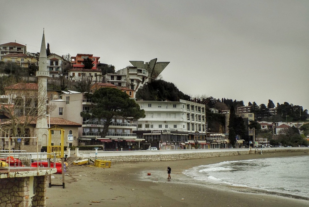 Az albánság a városképen is látszik és hallatszik: albán utcanevek, mecsetek, a müezzin hívó szava. Nincs messze a határ sem. A hegyoldalon a szombathelyi emlékmű elnagyolt mása, Jugoszlávia szelleme az öböl fölé kövülten.