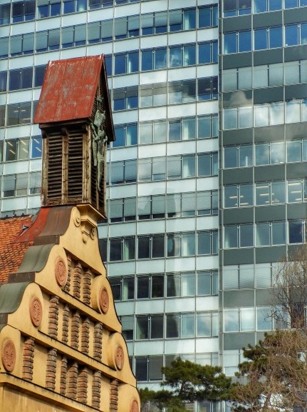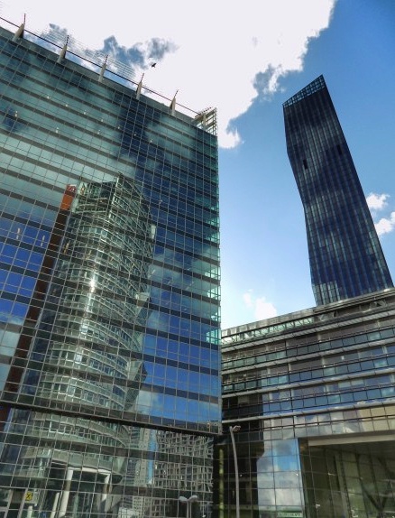 Míg a budapestiek nagy részéből jelentős ellenérzéseket váltott ki a MOL-torony megépítése a Lágymányosi-öböl partján, addig Bécs 22. kerületében egész városrészt képeznek a felhőkarcolók, a vasbetonból emelt, csillogó üvegfalú iroda- és lakóházak tömbjei. (Hasonló negyed van Pozsonyban is.)