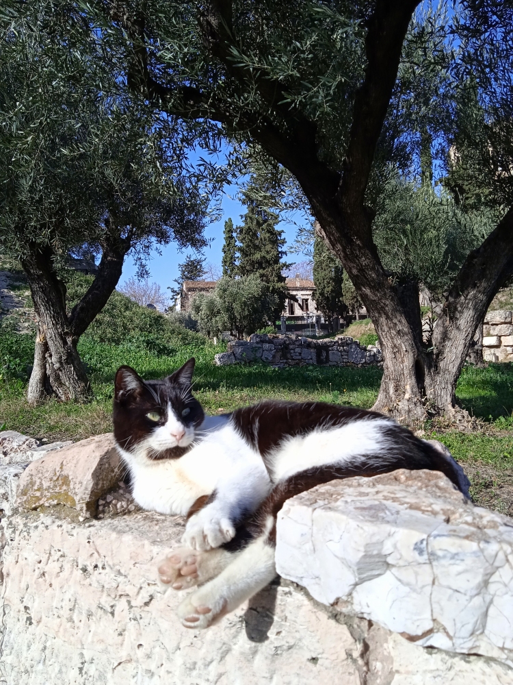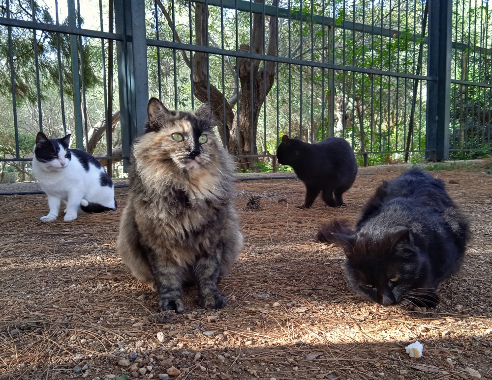 Macskák és macskaházak (sőt! komplett cicalakótelepek!) mindenhol. A kolostorban, a parton, Dionüszosz színházánál, a bazársoron, bárhol. A macskák hozzátartoznak a görög utcaképhez, és köszönik szépen, egészen meg vannak elégedve a sorsukkal.