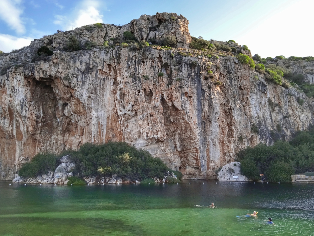 Hőmérséklete általában 21-24 °C körül mozog, de soha nem süllyed 18 °C alá. Ez a tény, meg a gazdag kén-hidrogén tartalom járult hozzá ahhoz, hogy a 19. század vége óta gyógyfürdőként működik. Télen is lehet benne fürödni, belépős, infók itt. Megközelítése tömegközlekedéssel: piros metróval Elliniko végállomásig, onnan 122-es busz, ami a bekötőútnál tesz le (Limnē megálló).