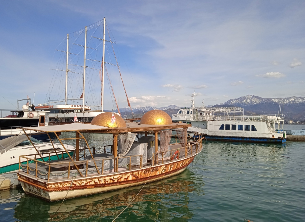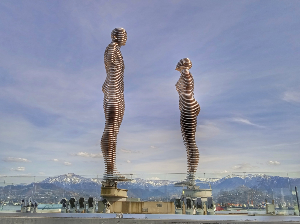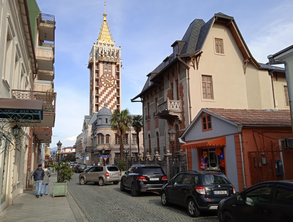 Körben kaukázusi havas hegycsúcsok. A franciás hangulatú régi negyedben hacsapuri és nyúlósan sűrű kávé képezi az ebédemet. Van mecset is, minarettel, meg egész utcájuk a törököknek – közel járunk a határhoz.