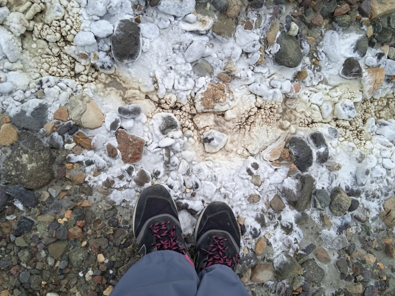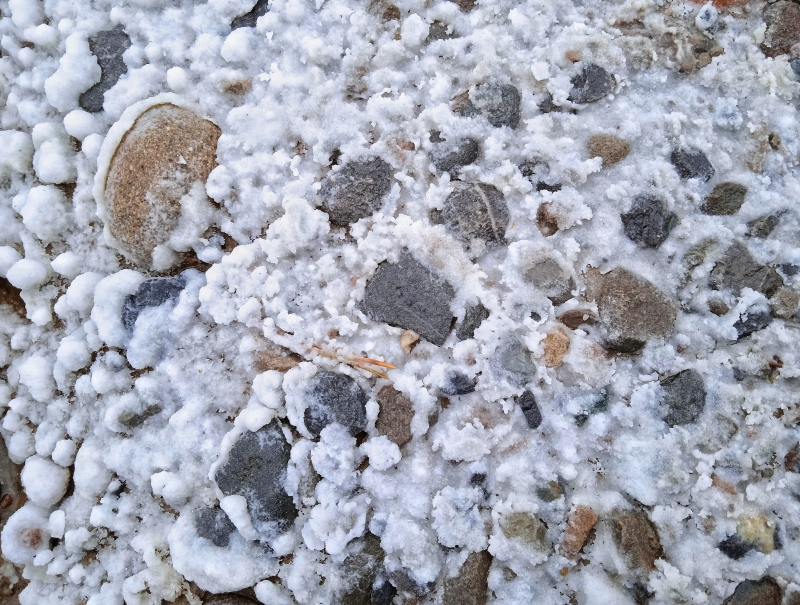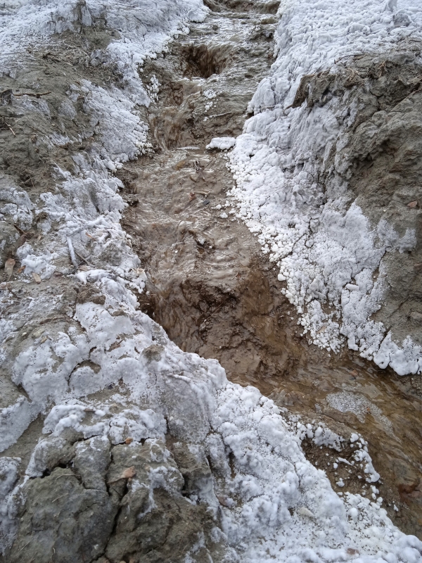A Sóháton beszivárgott esővíz a szorosban a sós lejtők alján ideiglenes sós forrásokként jelenik meg, majd kis erekben folyik tovább, vagy sós pocsolyákban gyűlik meg. A sós víz a napsütés hatására párologni kezd, a só kicspódik, és kristályosan rakódik rá mindenre. Ha egymás után több napig szép idő van, a táj kifehéredik, olyasmi lesz, mint egy sósivatag. Az első nagyobb esőzéssel aztán a lerakódott só feloldódik, és kezdődhet az egész elölről.