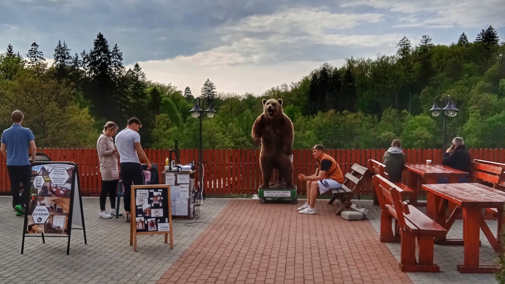 A Medve-tó partján 15 lejért lehet fotózkodni: te meg a kitömött medve. Az igazival meg ingyen is, már ha úgy tartja kedve…