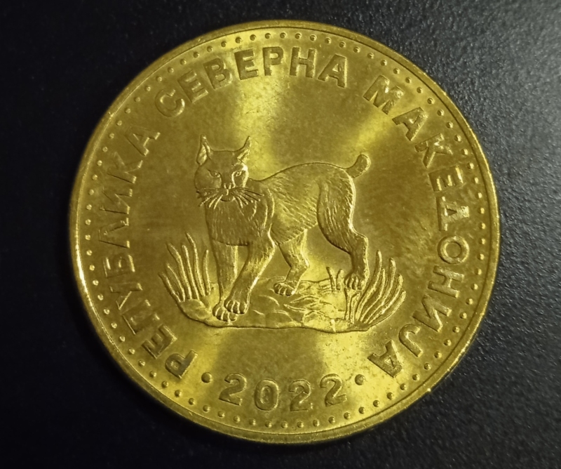 Az 5 dínáros érmén hiúz tanyáz. Nem sokat ér a bőre, kb. 30 forintot. Haza is megy velem, mint legjobb és legolcsóbb szuvenír: cicapénz. Az egyesen meg kutya van, ebből is látszik, hogy a macskák ötször többet érnek.