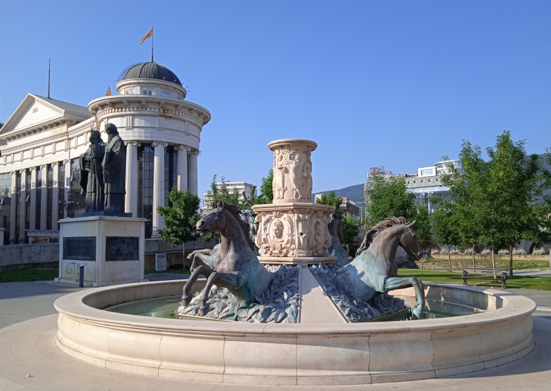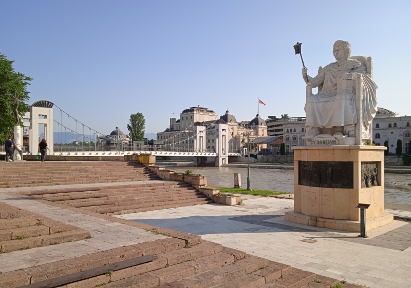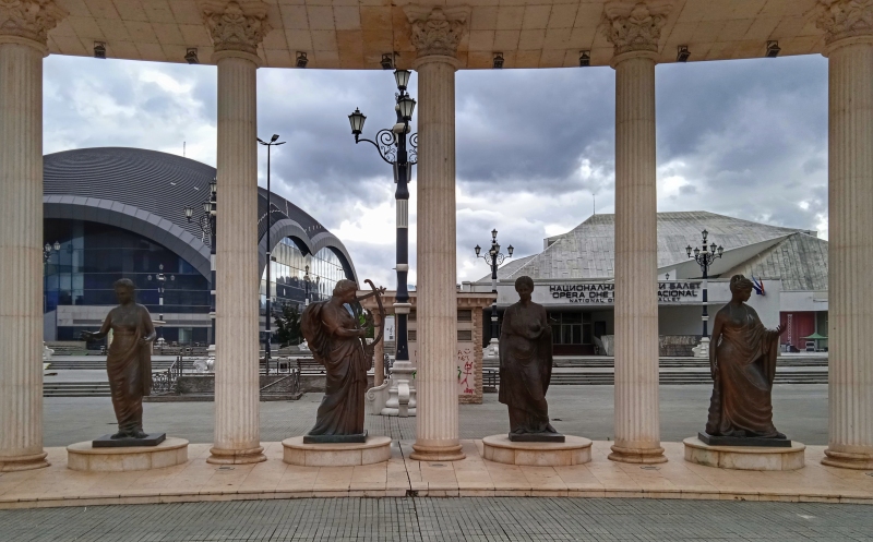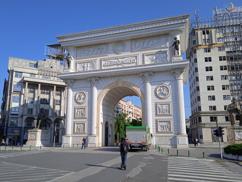 Szkopjéban a történelmet a szemünk előtt építik, nagyjából még az emlékműnek is van emlékműve. A 21 méter magas diadalív, a Porta Macedonia (Порта Македонија) a Pella téren áll, és minden látszat ellenére nem ókori műemlék, 2012-ben készült el. Volt is ellene tiltakozás, mive4,4 millió euróba került.