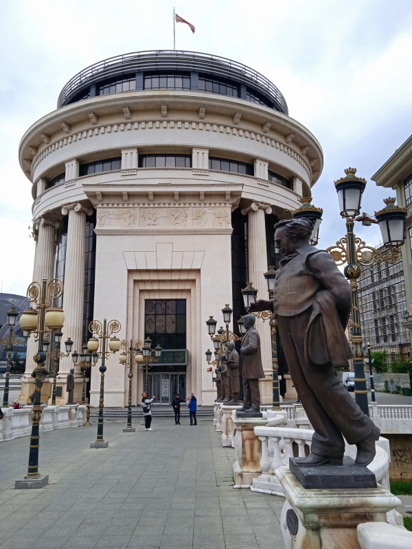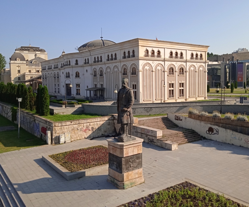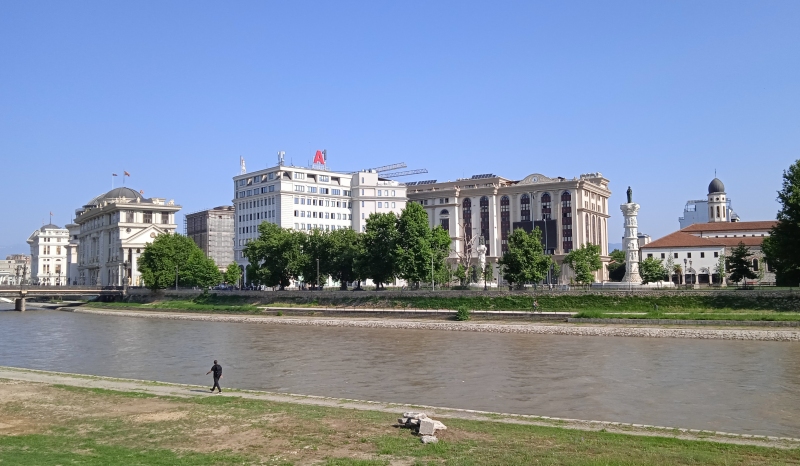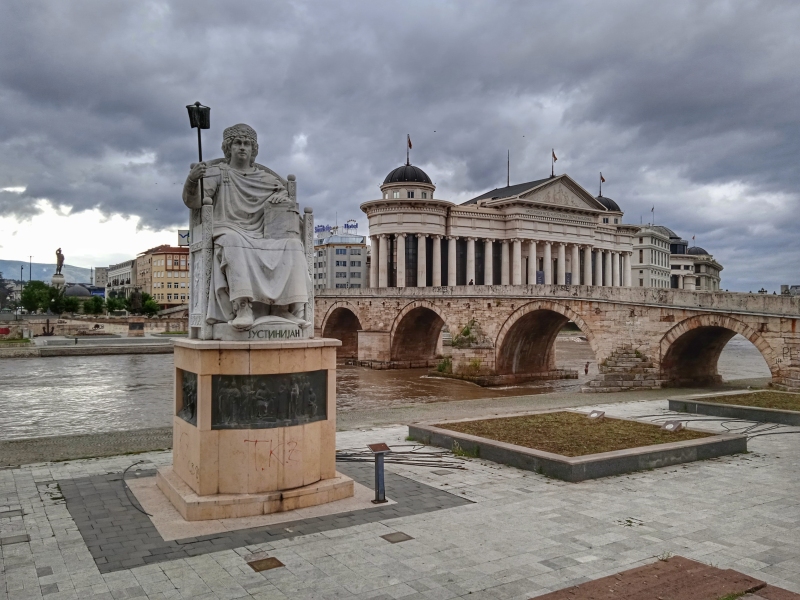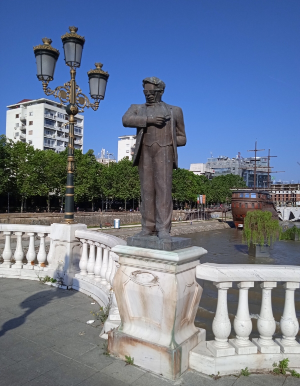 A helyi tömegközlekedés egy részét piros emeletes buszok biztosítják, de Szkopje ettől még nem lesz a Balkán Londonja. A monumentális szobrok és historizáló belvárosi csillogás mögött már egy utcányira is elég kopottas a város, nincs nyoma olyan látványos és nagy ütemű fejlődésnek, amilyet a szomszédos Albániában tapasztaltam.