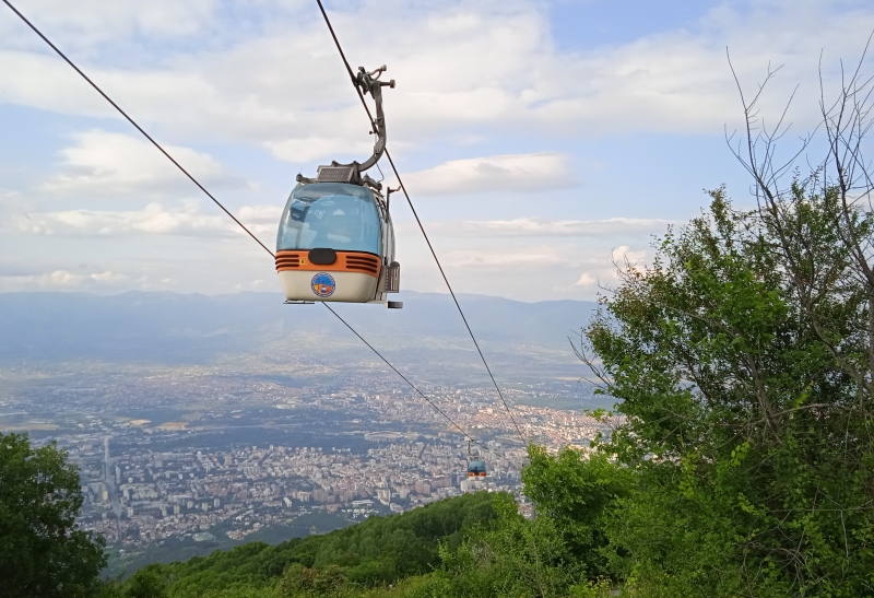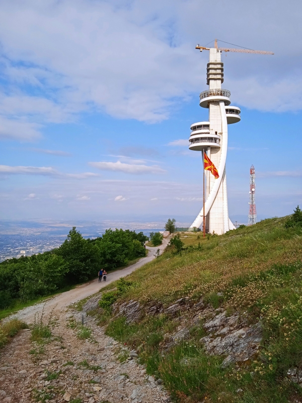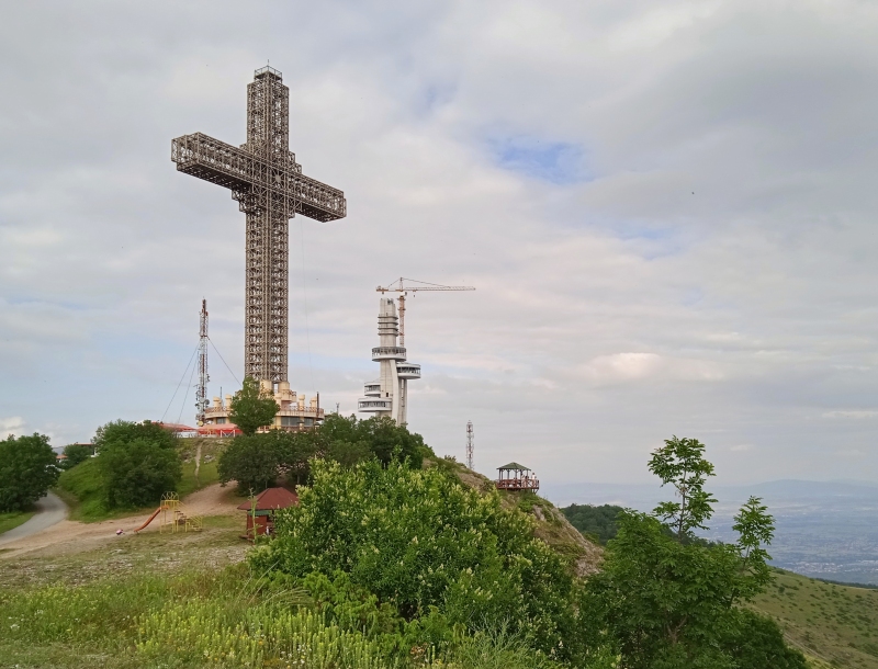 Egy-két órás kirándulás Szkopjéban, mégis a városon kívül: panorámás túra az 1066 méter magas Vodno tetején, amit megtoldottak az egész városból látható, 66 méter magas Milleniumi kereszttel, hogy idegesítsék vele a muzulmán albánokat. Kb. félútig gyalog mentem fel (rendes túracipő nem ártott volna, sziklás, köves és qrwa meredek), onnan meg vitt a cable car. 100 dínár (600 forint) az oda-vissza libegés.