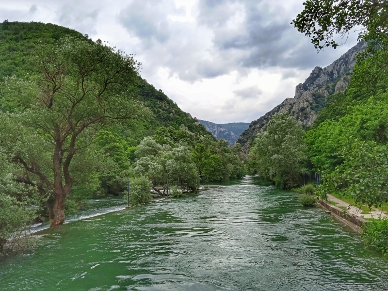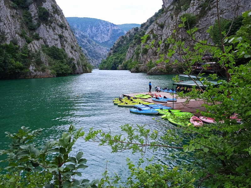 A Matka-kanyon (Кањон Матка, jelentése: anyaméh – ez az anyamotívum már többedszer köszön vissza, szóval itt senki nem marad árván) 15 kilométerre van az észak-macedón fővárostól. A kanyon egy nyugat–keleti irányú hegyvonulatot szel ketté, itt van a Treska-folyó, a mesterséges Matka-tó, valamint számos középkori (sőt, ókeresztény maradványokat tartalmazó) kolostor található. Napos időben a víz ragyogó türkizkék. A terület 10 barlangja közül a legismertebb a Vrelo-cseppkőbarlang, amit csak a víz felől lehet megközelíteni. A tóparton lehet kölcsönözni kajakot vagy befizetni hajókirándulásra.