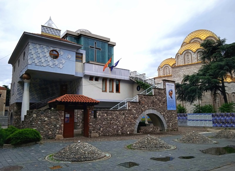 Múzeumát egy másik utcában építették fel. Mondjuk úgy, hogy megoszlanak a vélemények az épület szépségét illetően… A Teréz Anya Emlékház (Спомен-куќа „Мајка Тереза“) címe: Macedonia St 1000, Skopje, nyitva hétköznap 9-20:00, hétvégén 9-14:00, a belépés díjtalan.