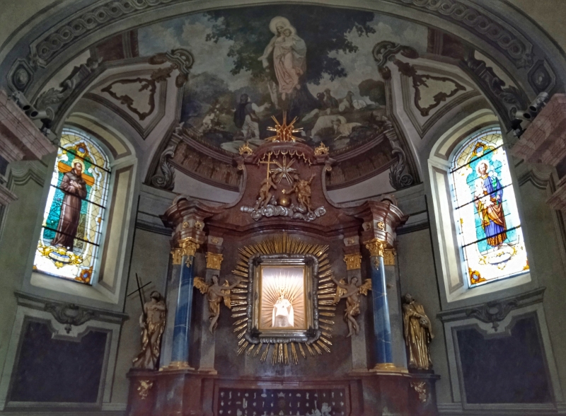 A Nagyboldogasszony-bazilika nevezetessége a “divatozó Szűzanya“: az öltöztethető kegyszobor ruháit az egyházi ünnepeknek megfelelően cserélik, saját varró- és öltöztetőnője van.