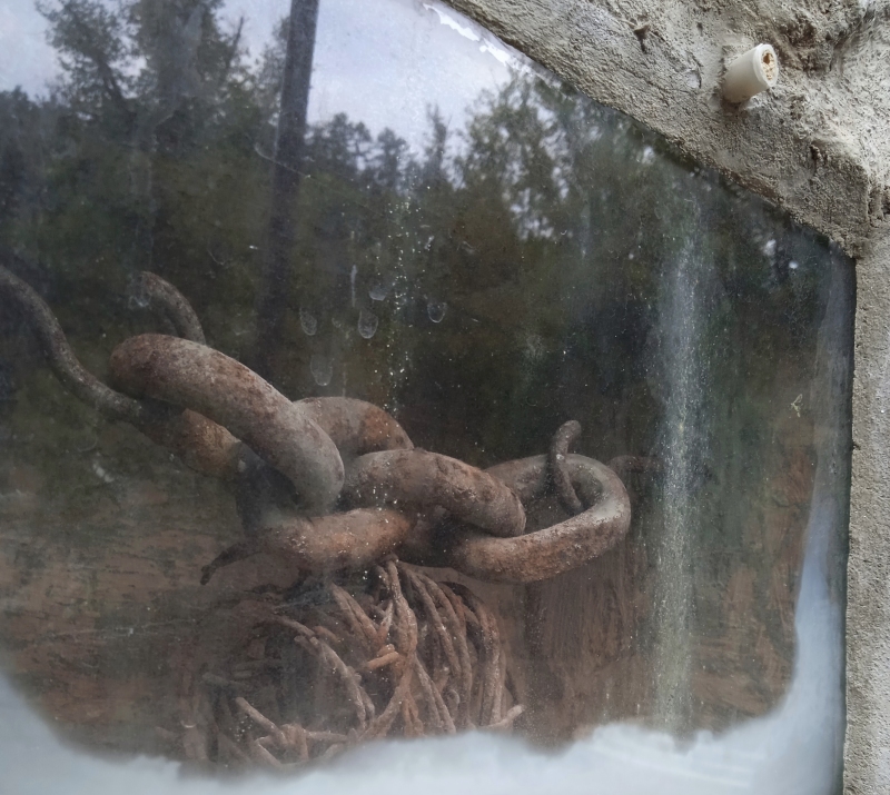 A 10. fotó talán igényel némi magyarázatot. 1956-ban Lourdes-ban a magyar zarándokok egyszerű fakeresztet emeltek, amelyre egy vasláncot és a következő feliratot helyezték: Édes Szűzanya – Igazságot Magyarországnak! A képen látható két szem ebből a láncból származik.