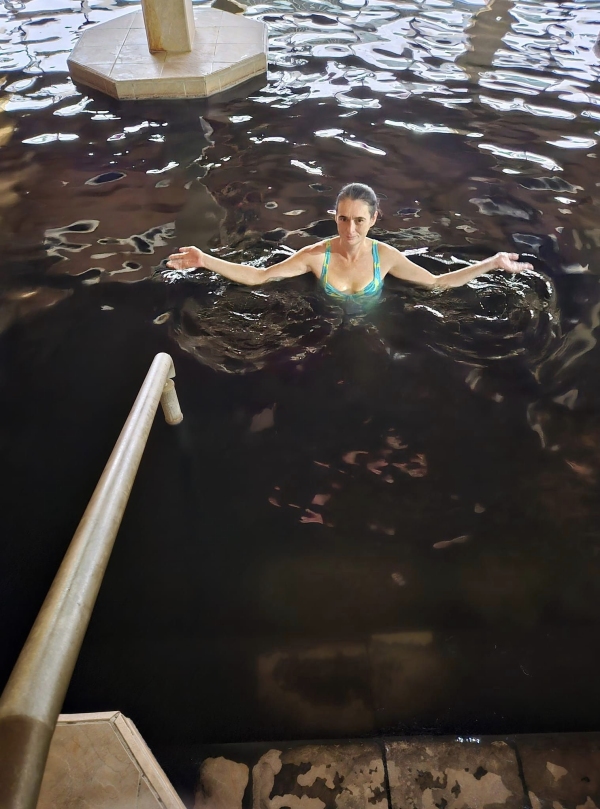 A 2000 négyzetméteres, mesterséges tó különös színét a víz összetétele okozza: a só mellett lítium, jód, bróm, kén és fluor is található a pacséri termálvízben. Ajánlott gyulladásos betegségek enyhítésre, ízületi, csont- és légúti megbetegedésekre, enyhíti az izomhúzódások, valamint az érrendszeri megbetegedések tüneteit, ill. és antidepresszáns hatása is van. Az 1400 méter mélyről feltörő 72 °C-os gyógyvizet lehűtik, és a tóban 30 fokos a víz (elvileg… én sokkal hűvösebbnek éreztem), ami napnyugta közeledtével egyre misztikusabb látványt nyújt. A benti medencék hőmérséklete 32–36 °C, és itt a víz szinte feketének látszik.
