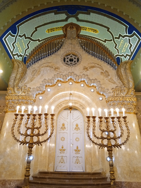 Az épület szerkezetileg is különleges, mivel a laza talaj nem bírta volna el (a Szent Teréz-székesegyház az elrettentő példa, erre még visszatérek) a hatalmas kupolát, így azt a földbe süllyesztett betonoszlopok tartják. Színes rózsaablakai, mint megkövült magyar népmesék, zsidó mandalák.