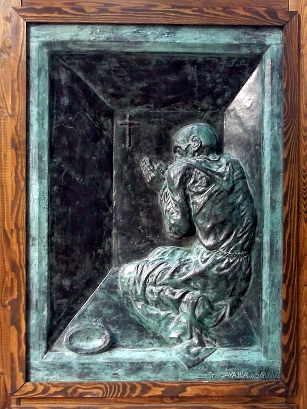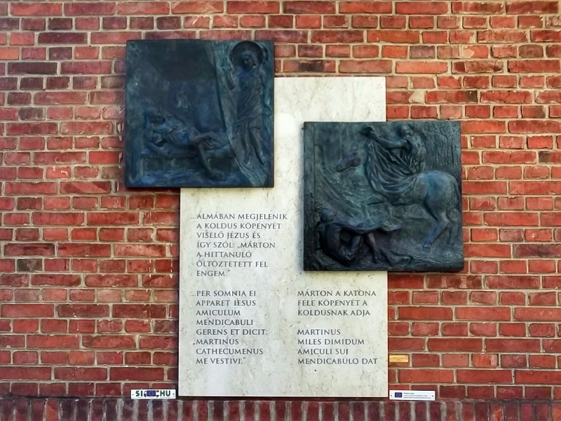 Koller László (nevével már az ókori színháznál is találkoztunk) itt azt ábrázolta, amint Márton püspök a ruháját egy koldusnak adja.