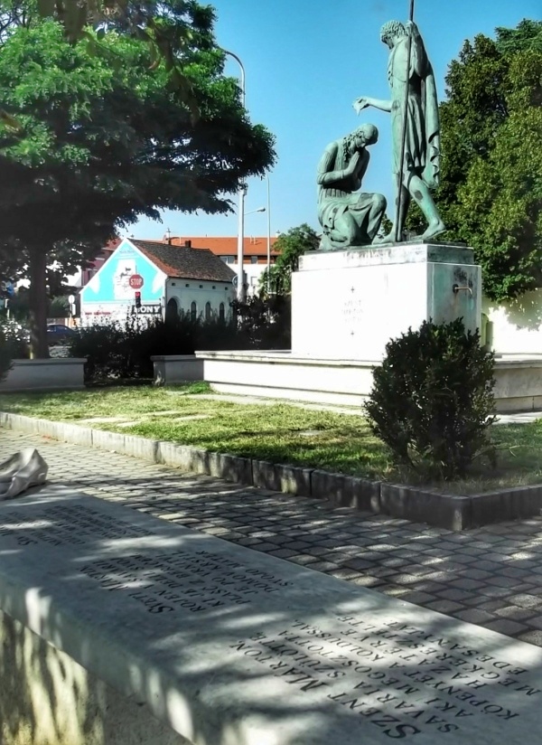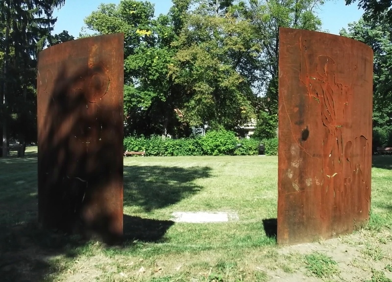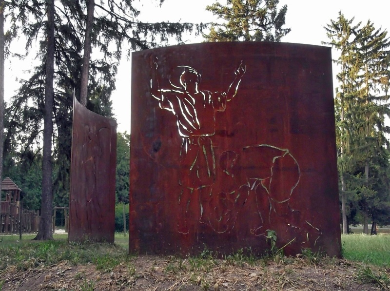 Itt azért már feljebb csúszik a turista szemöldöke. A füves terület közepén két irdatlan rozsdatömeg fogad, mintha csak ottfelejtette volna valaki. Quirinus püspököt hitéért halálra ítélik; Mártont az eretnekek megvesszőzik, és elűzik Savariaból – ezek a címei a Koller László által készített vasparaván-párnak, amely Szent Quirinus halálos ítéletét és Szent Márton megvesszőzését, elűzését mutatja be. Nehezen fotózható, cserébe ronda.