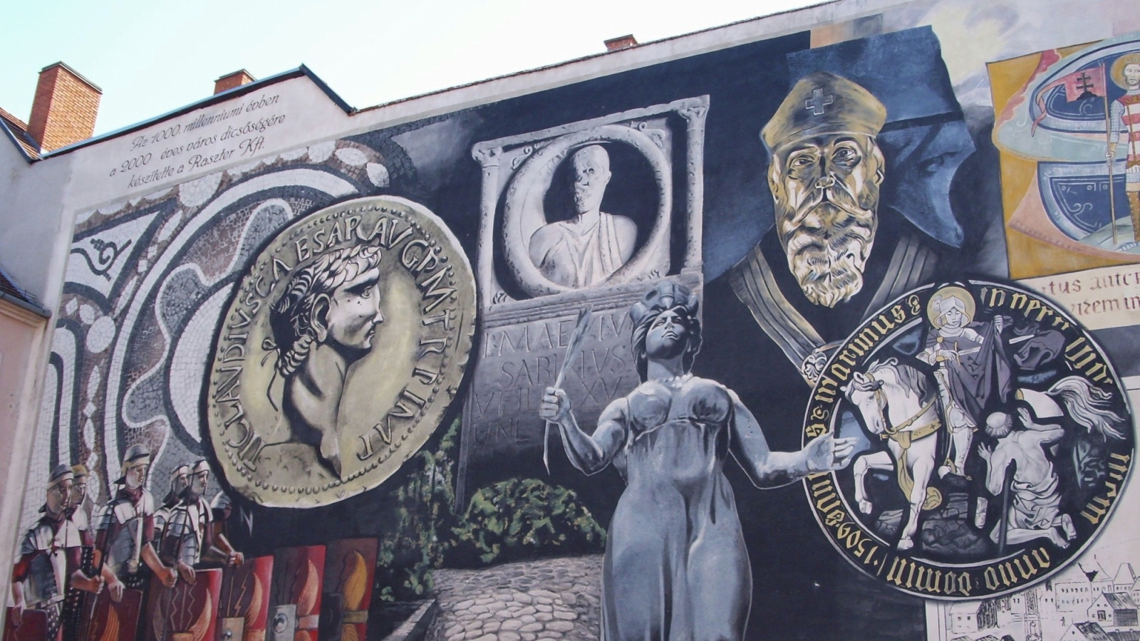 Innét érdemes a Bécsi Kávézó mellett beszaladni a VAOSZ-udvarba, megnézni a Millenniumi Emlékfalat, ami egy modern kori freskó, és Szombathely két évezredes történelmét foglalja össze vizuálisan (ennek egy része van a fönti borítóképen).