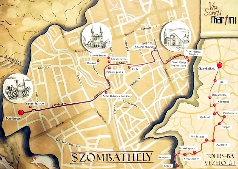 A Via Sancti Martini a szent életét és kultuszának kiemelkedő emlékeit bemutató útvonal, amely Szombathelytől Tours-ig vezet, és 2005-ben nyilvánították Európai Kulturális Útvonallá. A szombathelyi szakasz a Kálvária templomtól vezet a Szent Márton templomig, és azokat a helyszíneket érinti, amelyek a város ókeresztény hagyományaihoz kapcsolódnak. Az egyes állomásoknál lévő műalkotások, Márton és Quirinus életének egy-egy epizódjára hívják fel a figyelmet. Hol ízlésesen, hol nehezebben értelmezhetően. Malomkerekekben bővelkedő túra következik.