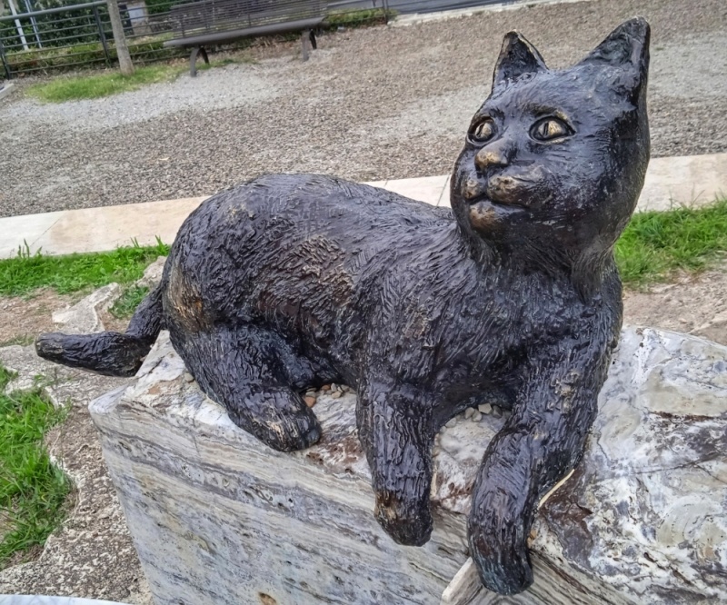 Toszkána egyik legkülönlegesebb városkájában, a középkori felhőkarcolóiról híres San Gimignanóban áll egy szoborcsoport, aminek ez a cica is a részét képezi. Ha arra jársz a L’Albero Delle Canellét keresd a Piazzale Martiri di Montemaggión.