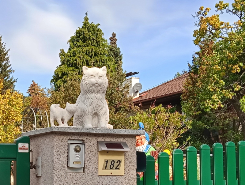 Szintén magánháznál, de az utcát díszítve ücsörög ez a páros, valahol a Hohe Wand környékén. Szerintem sokkal menőbb, mint a klasszikus oroszlánfigurák!