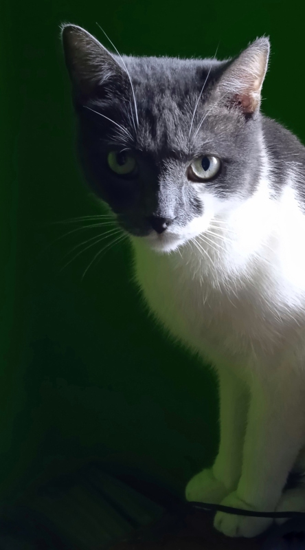 A laposkúszásban megörökített, kissé menyétszerű macska vendégekre vadászik, lévén ő egy cat cafe (olyan kávézó, ahol cicák is élnek, és lehet velük barátkozni, miközben elfogyasztasz egy jó csésze bécsi feketét) cégére.