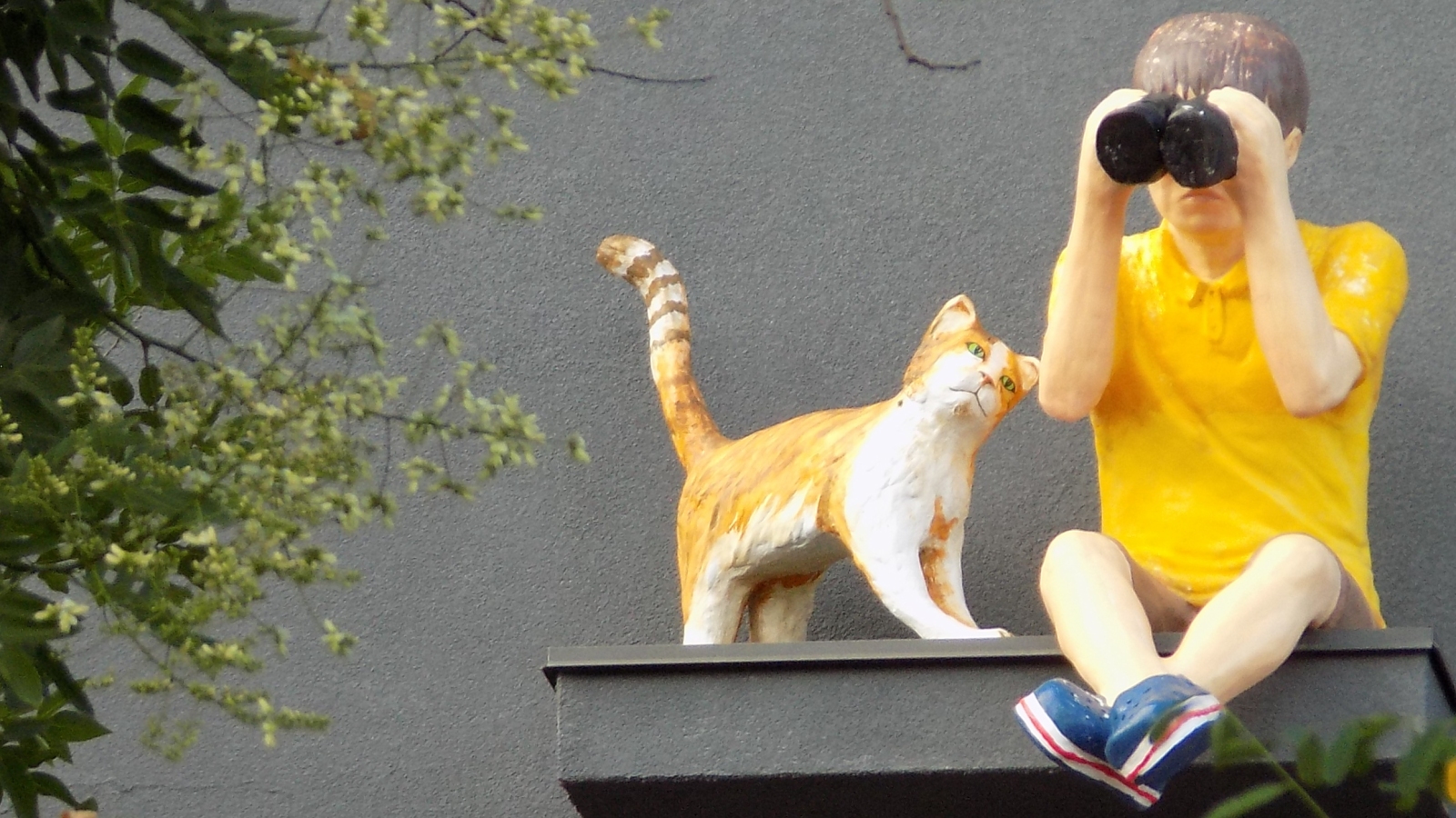 A német költő, komédiás és énekes, Jupp Schmitz emlékműve egy apró téren áll, a Jupp-Schmitz-Plätzchenen, Köln belvárosában. Schmitz zongorája alatt kicsike macsika kergeti a művész szerteszórt papírjait.