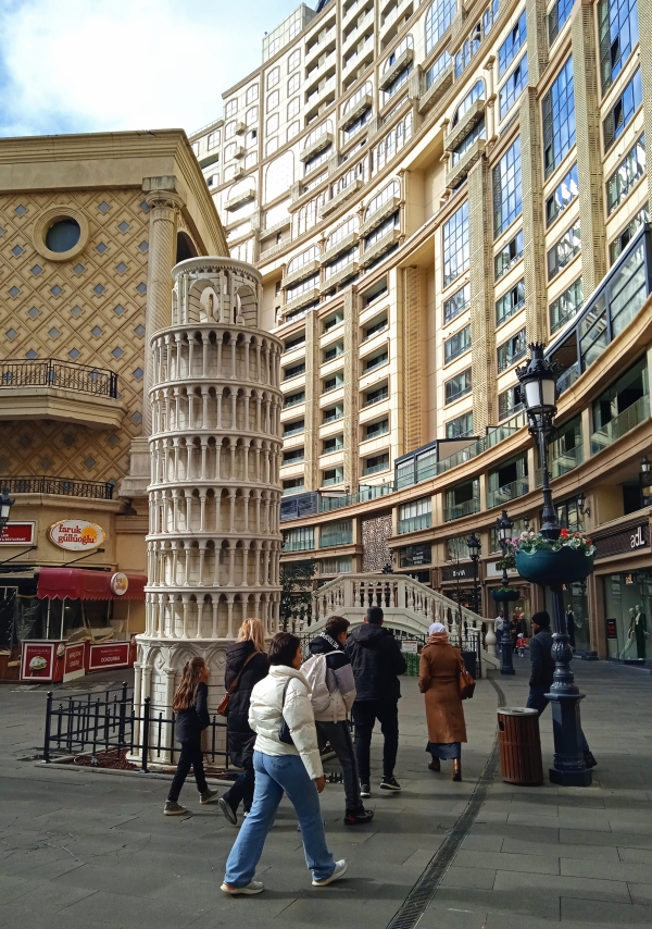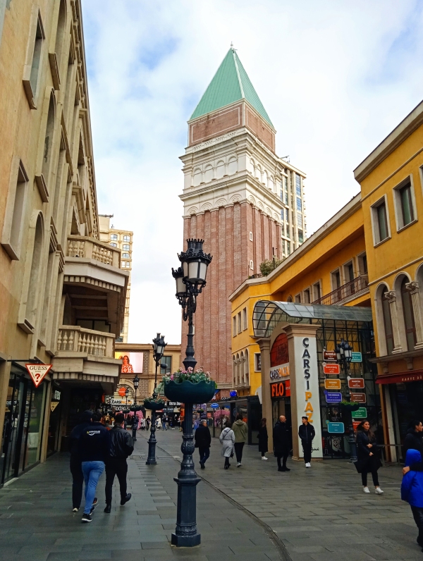 Elugrottam Velencébe, vagy csak úgy gondolám? O, sole mio… o, dio mio… Ez a Venezia Mega Outlet, egy bevásárlóközpont, ahol még gondolázni is lehet a csatorna vizén, a paloták közt szürcsölve az itáliai életérzést. De mit keres itt a pisai ferde torony?