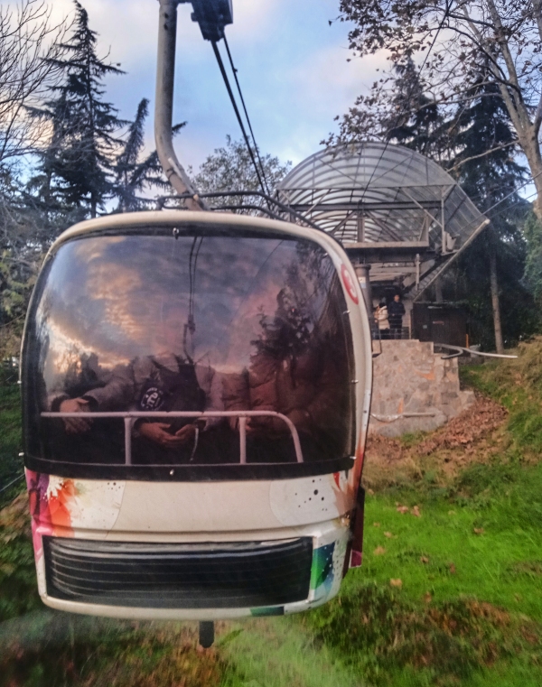 Libegésre én a Taşkışla – Maçka vonalat választottam, már csak a neve miatt is. A két 10 személyes fülkéből álló szerelvény egy mély völgy és az ott futó forgalmas autóút fölött haladt át, az egy útra szóló jegy itt is 15-be került. Rajtam kívül gyakorlatilag csak helyi fiatalok utaztak. Elég menő dolog nap mint nap libegővel járni suliba, szerintem.