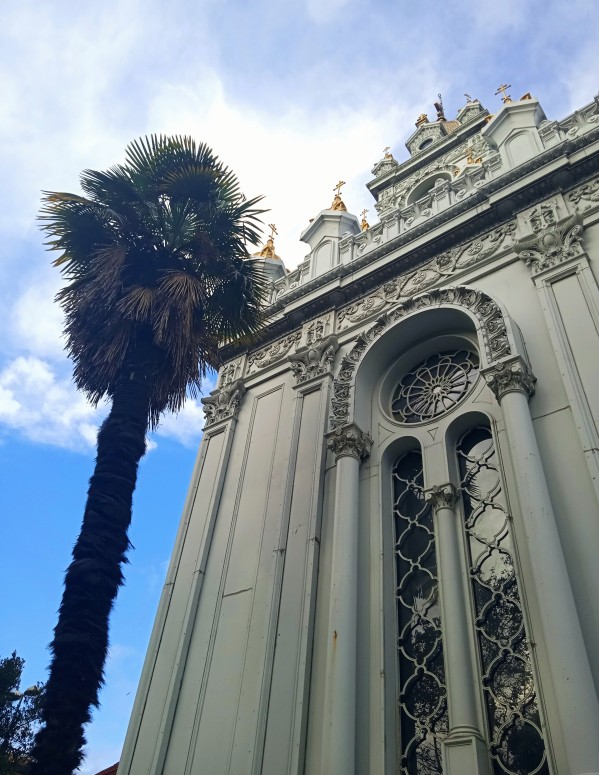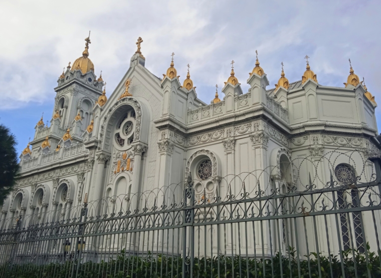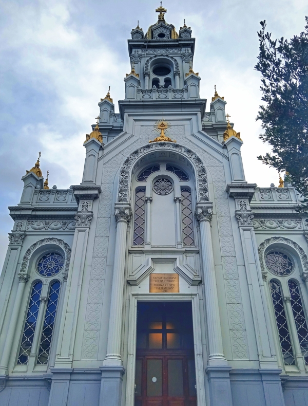 Az 500 tonnás előregyártott elemeket 1893 és 1896 között gyártották le az osztrák üzemben, majd a Dunán és a Fekete-tengeren hajóztatták le ide. A templomot 1898-ban avatták fel. Az összes alkatrész anyákkal, csavarokkal, szegecsekkel vagy hegesztéssel van rögzítve, építészeti stílusát tekintve a neobizánci és a neobarokk hatásokat ötvözi.