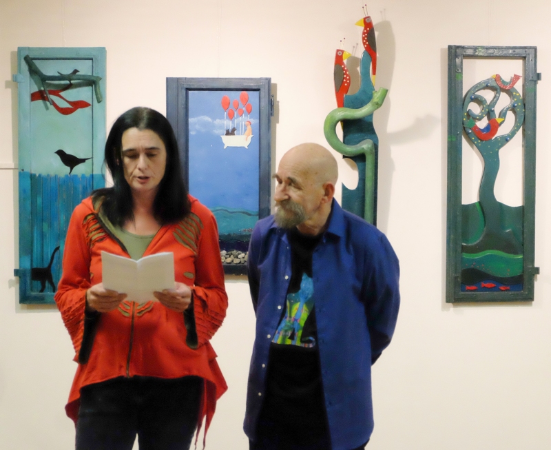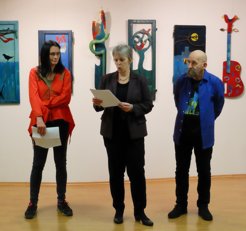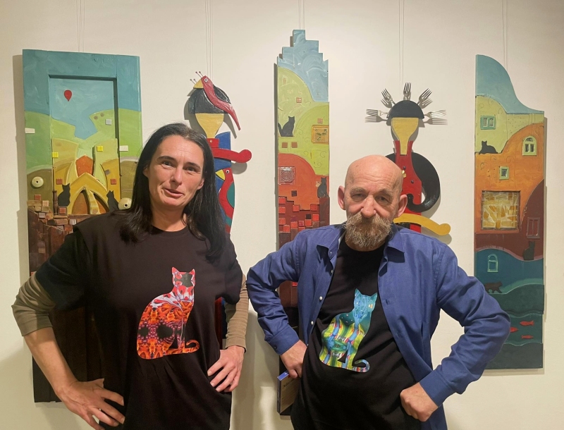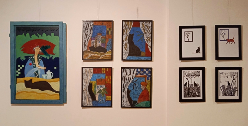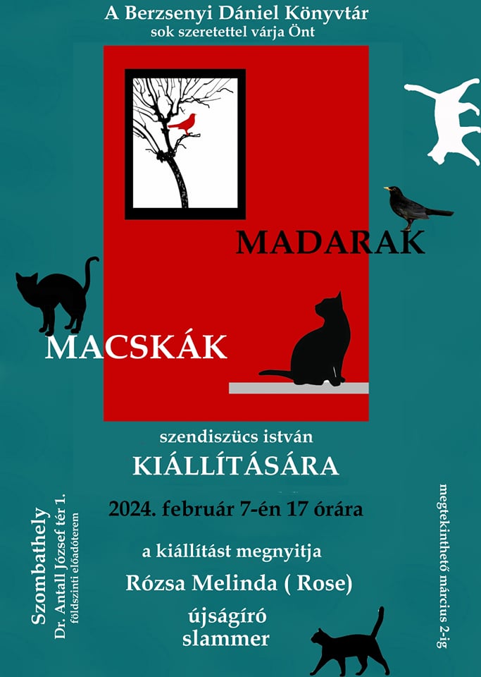 Macskák – Madarak, ez a címe Szendiszücs István kiállításának, ami Szombathelyen, a Berzsenyi Dániel Könyvtárban látható 2024. március 2-ig. A vernisszázs február 7-én volt, amelyre örömmel fogadtam el a művész felkérését, miszerint nyissam meg én. Megtettem: