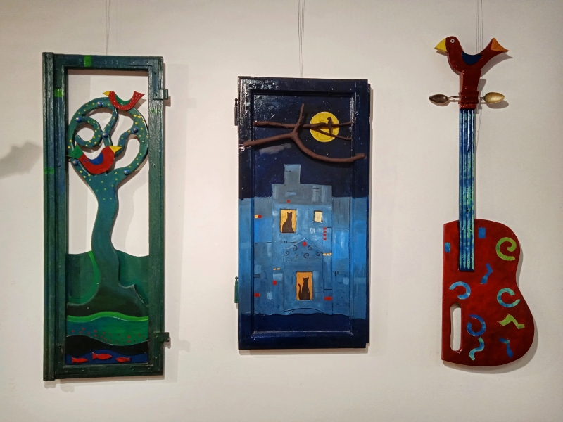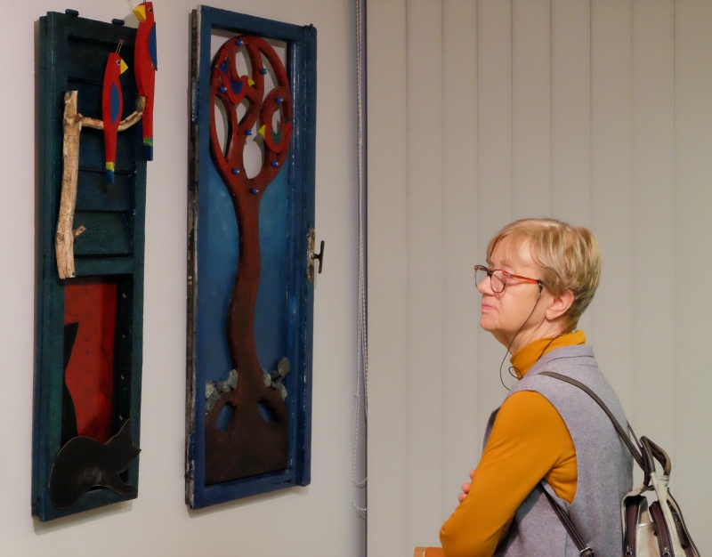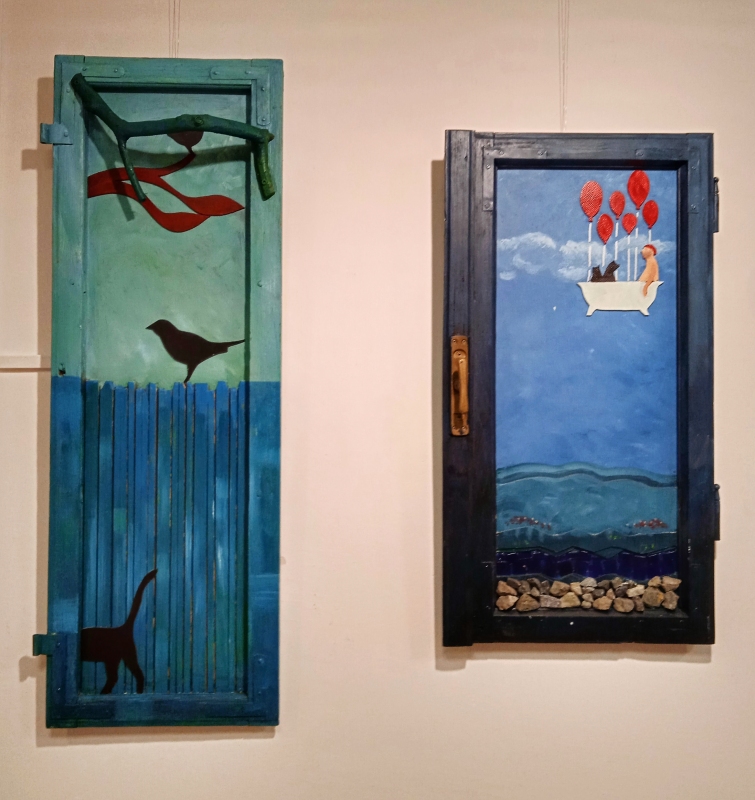 A kiállítás címe: Ablak. Néha egy ablak kerete lesz képkeretté, a képkeret meg ablakká. Szendiszücs István munkái száz meg száz ablakot nyitnak. Nagyon helyes! Mindjárt itt a tavasz, nyitnikék, sőt, esetünkben nyitnizöld, nyitnipiros meg nyitnisárga is.