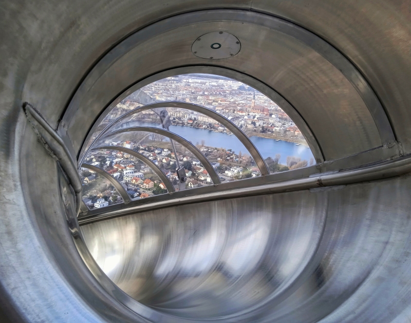 Én kipróbáltam, és… woooow! Bécsben van erre lehetőség, amióta a Donauturm kiegészült ezzel az új attrakcióval. A Donaturm Rutsche nevű panorámás csúszda 165 méter magasan várja a kalandvágyó látogatókat.