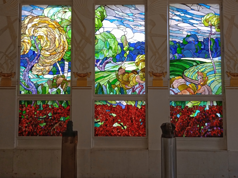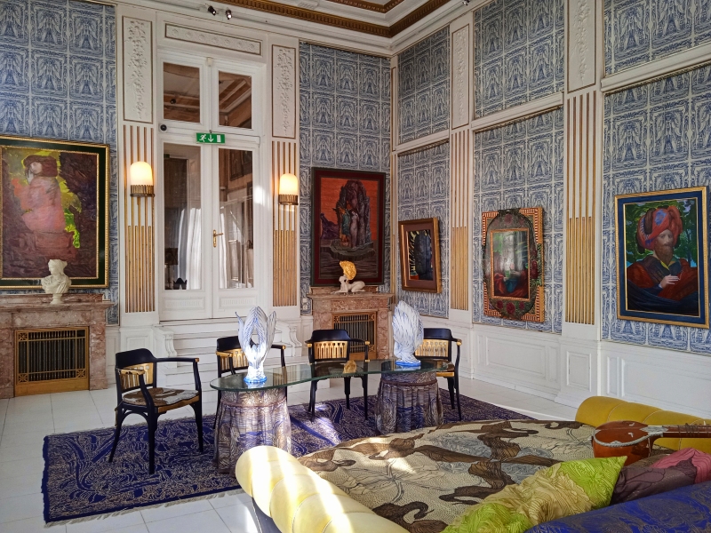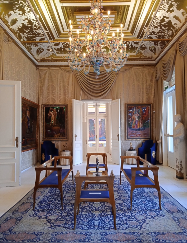 A patinás épület múzeumnak látszik, lenn kassza is van, de sehol senki. Az ajtó nyitva, hát bemegyek, majd fel az emeletre, ahol egy galériát találok.