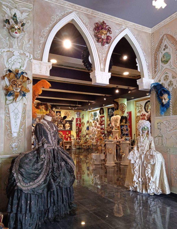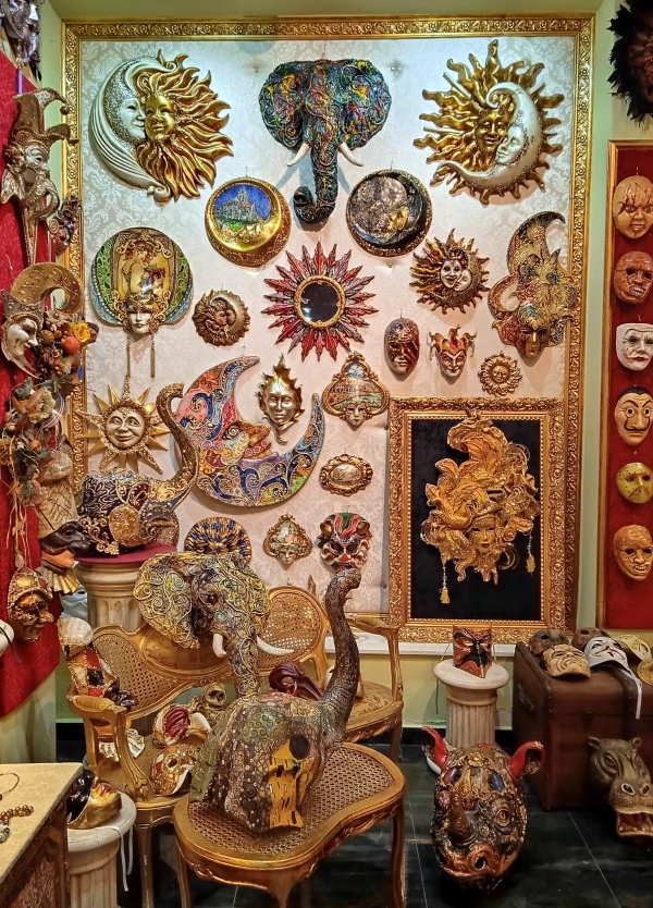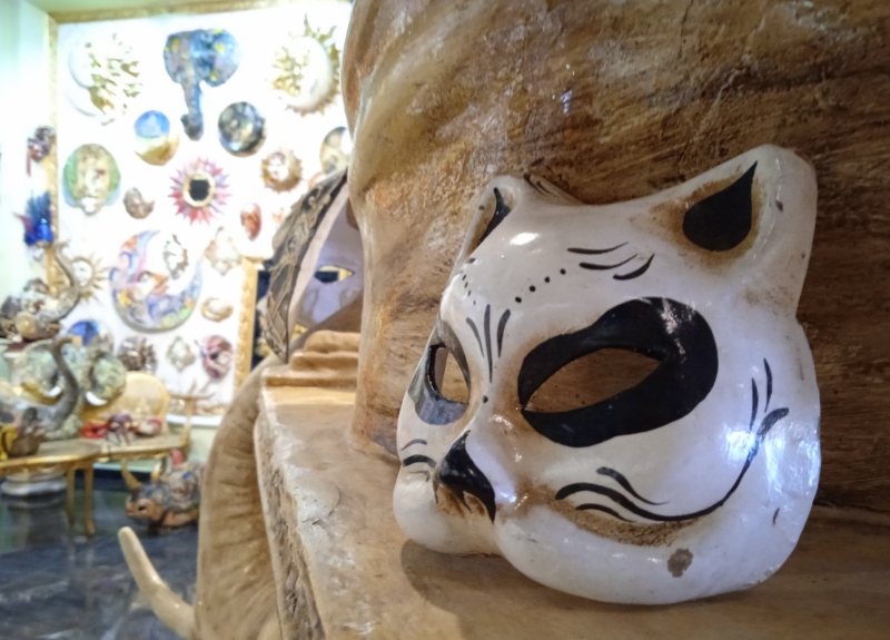 A Venice Art Mask Factory kiállítása a velencei maszkok változatos gyűjteményét mutatja be, a klasszikus harlekintől a csőrös pestisdoktoron át a macska- és más állatpofikig/pofákig. Temérdek egyéb, a velencei karnevált és életérzést idéző tárgyat, dekorációs elemet is láthatunk ezen a valószerűtlen helyen.