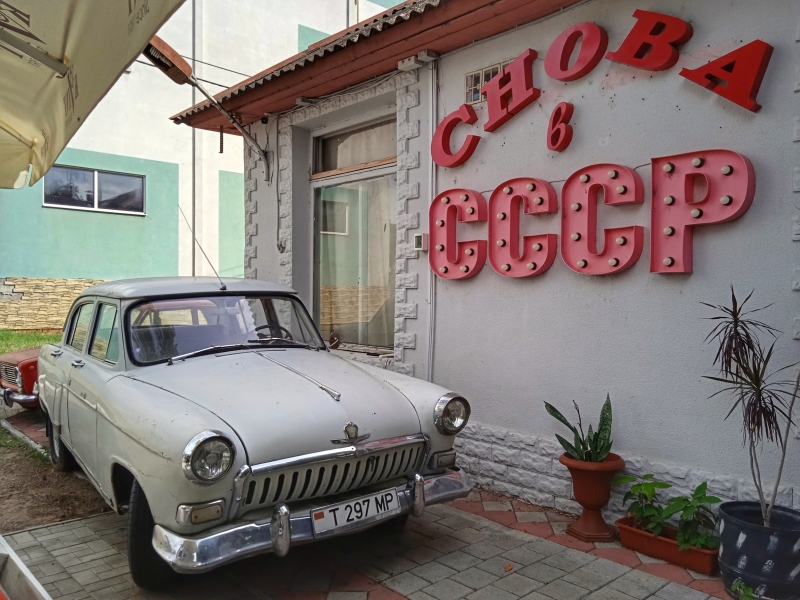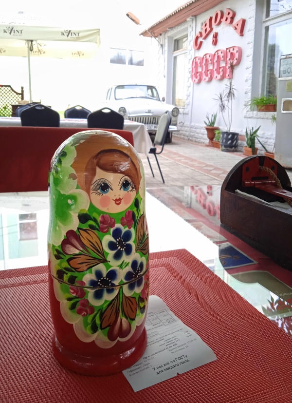 Back in the USSR az étterem neve is, ahol matrjoskában kapom a számlát. Az ételek Transznisztriában határozottan olcsók, miként az italok is. A helyi borok és főleg a brandy kiváló: itt készül a világszerte forgalmazott és kedvelt Kvint. Az 1897-ben alapított italgyár központja a Lenin úton van, szerveznek kóstolókkal egybekötött vezetett túrákat is.