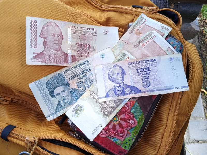 Miközben meg ott van: Moldovából kihasított szelet, Ukrajnához lapulva. Mármint a térképen. Az életben inkább Oroszországgal bújna össze. Transznisztria, azaz a Dnyeszter Menti Moldáv Köztársaság egy de facto állam Moldován belül. Lényegileg orosz terület. Még saját valutájuk is van, amit sehol máshol nem váltanak és nem értelmeznek. Rubelnek hívják, mi másnak, de ez spéci transznisztrubel…
