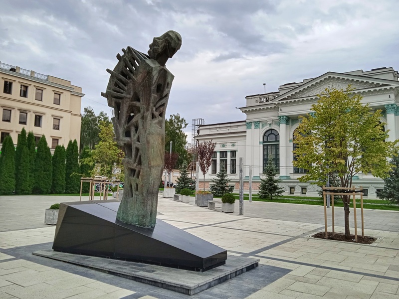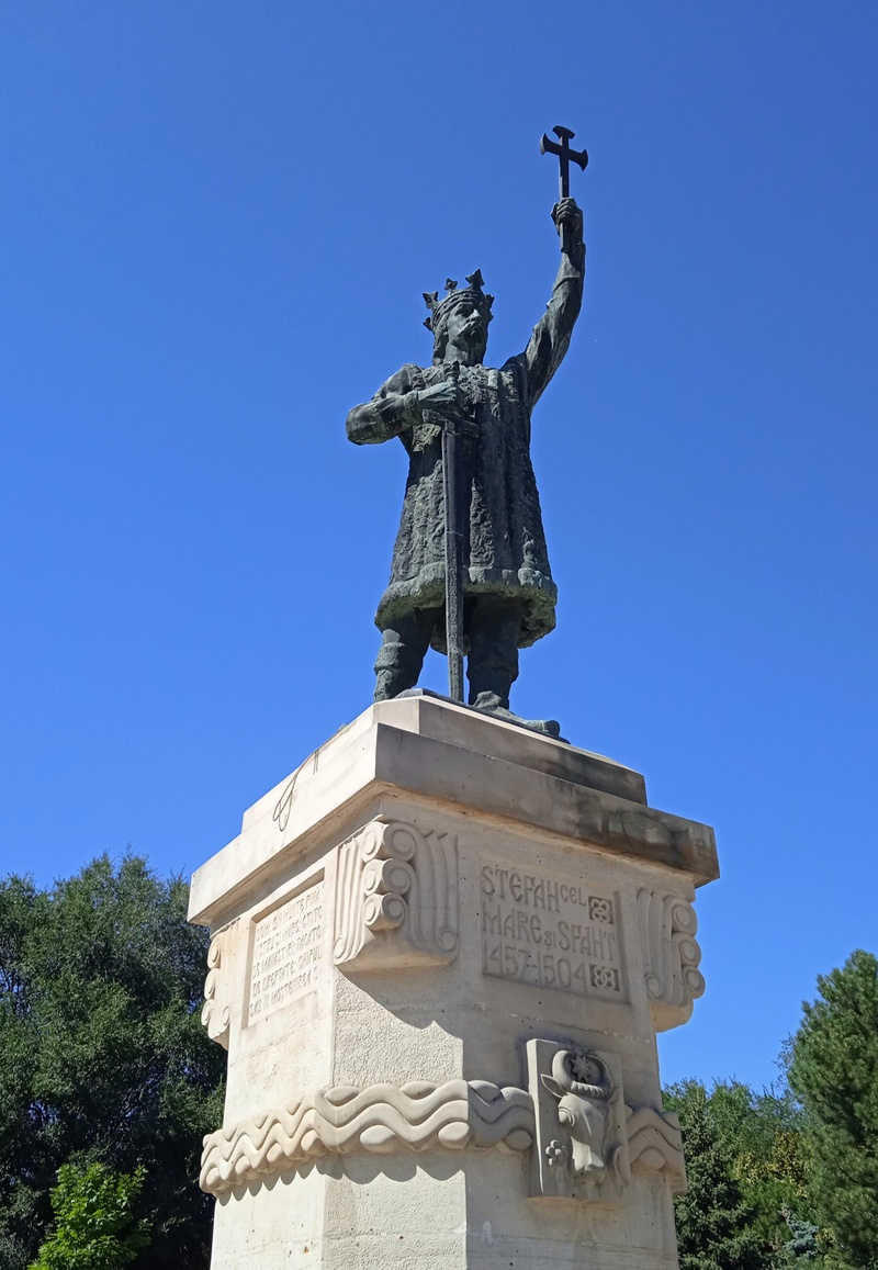 III. (Nagy) István Moldva fejedelme volt 1457–1504 között. Uralkodása alatt Moldva erős állammá fejlődött, és megőrizte függetlenségét a Magyar Királysággal, Lengyelországgal és az Oszmán Birodalommal szemben. István 36 csatából 34-ben győzött, nem véletlenül ő a legfőbb alak a városközpontban, magasba nyúló talapzatáról figyeli a forgalmat. Odébb galambok pihengetnek uniós kavicsokon.