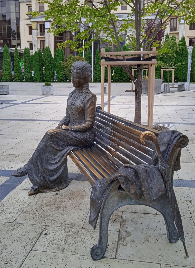 Ugyanerre a térre szoborták Eminescu szerelmét. A szintén költő Veronica Micle, eredeti nevén Ana Câmpeanu (1850-1889) egy padon üldögélve várja az ihletet.