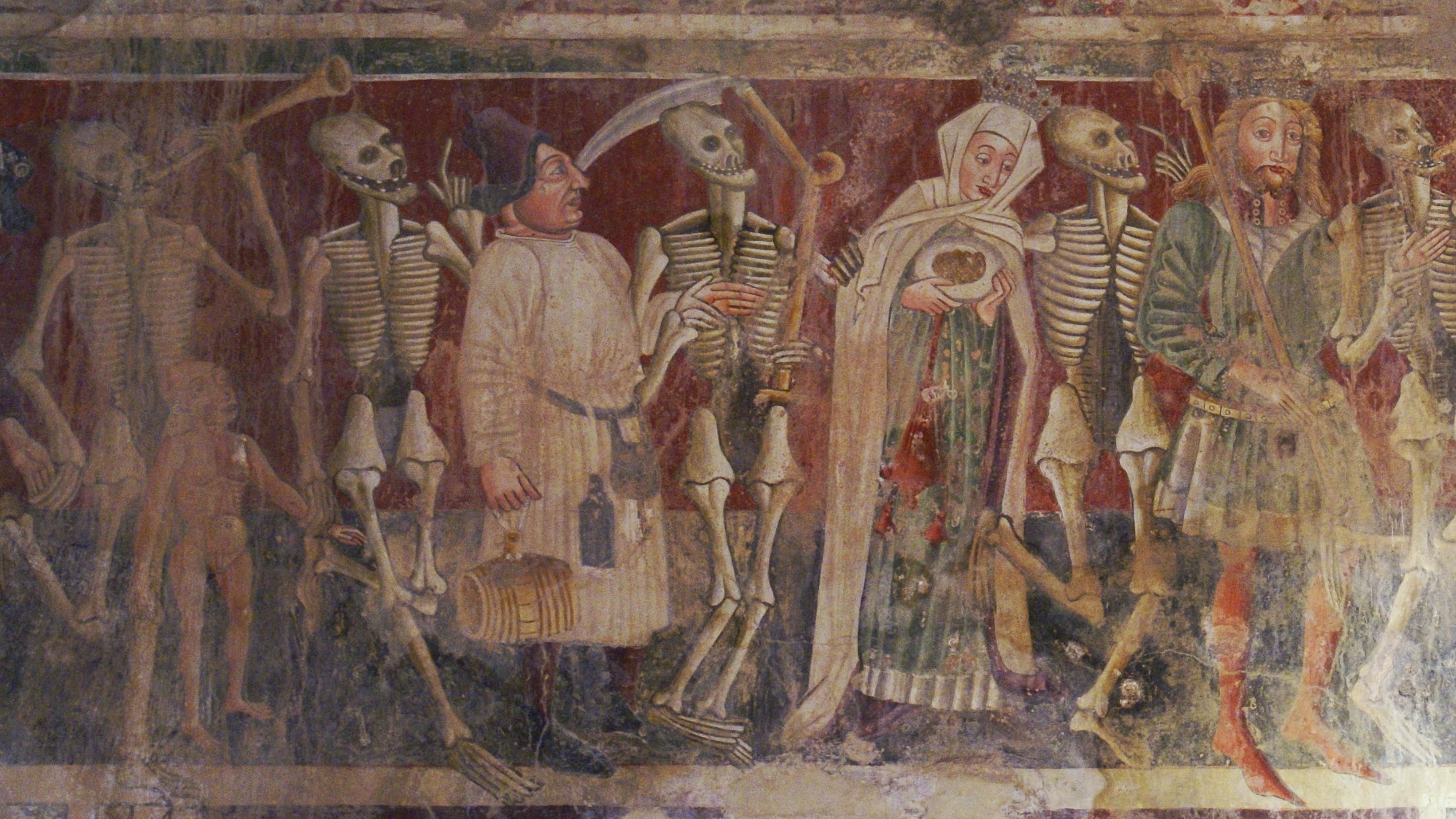 A haláltánc (Danse Macabre) a középkor irodalmának és művészetének egyik kedvenc motívuma, elterjedtsége jó eséllyel a XIV-XVII. századi pestisjárványok eredménye. A haláltánc lényege a halál előtti egyenlőség gondolata. A halált ábrázoló csontvázak táncra kérik a kiszemelt áldozatot, pápától a királyokon át a jobbágyokig. Jó példa a nyitókép haláltánca az Isztriáról, Horvátországból: a berami Sziklás Szűz Mária-kápolna (Sveta Marija na Škriljinah) freskóját 1471-ben festette Kastvai Vincent.