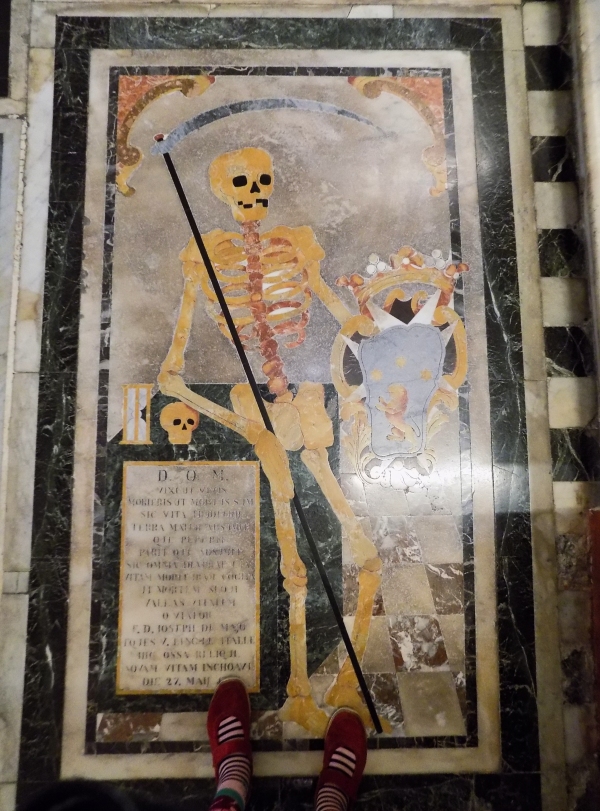 Koponya- és csontvázábrázolásokat rengeteg templomban láthatunk, de van egy hely Máltán, ahol ahova lépünk, halálfej terem. A sziget legnagyobb temploma, a vallettai Szent János-társkatedrális (Kon-Katidral ta’ San Ġwann) padlózatát ugyanis 400 sírkő képezi. 1565-ben Szulejmán török szultán 40 000 fős haderőt küldött a sziget meghódítására, amelyet csak 700 máltai lovag és 8000 katona védett. A máltaiak győztek, de az emberveszteség jelentős volt. Az ostrom során elesett közel 400 lovagot később az 1577-ben elkészült székesegyházban temették újra, a csontvázakkal teli padlót gyakorlatilag az ő sírköveik alkotják.