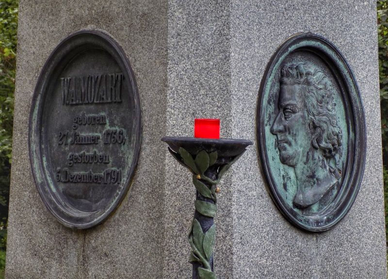 Mozart a kakukktojás. 1791. december 5-én hunyt el, és a bécsi St. Marx temető (ma park) jelöletlen parcellájában temették el – ami akkoriban megszokott eljárás volt. A temetésen kevesen vettek részt, még a felesége sem, ez is hozzájárult ahhoz, hogy később nem lehetett pontosan megtalálni a pontos végső nyughelyét. Az 1800-as évek közepén egy valószínűsíthető helyen állítottak neki egy emlékkövet, majd ezt 1859-ben lecserélték a Hanns Gasser alkotta emlékműre.