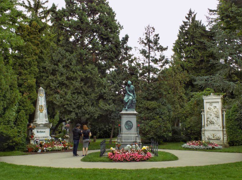 Beethoven, Mozart, Schubert… és az 1998-ban elhunyt popsztár, Falco. Róluk (síremlékeikről) hoztam most képeket, de a Bécs 11. kerületében elterülő hatalmas temetőben nyugszik például Brahms, Schönberg és Ligeti György is, hárommillió más ember társaságában (a sírkövek száma kb. 330 000).