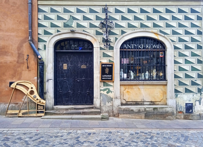 A kép a Warsaw Museumban látható, ahova mindenképp érdemes bemenni, részint mert nagyon átfogó képet ad Varsó történetéről, részint meg mert a legfelső szintről ilyen kilátás nyílik az Óvárosi piactérre (Rynek Starego Miasta):