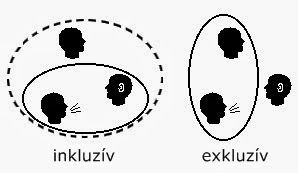 Az inkluzív mi az, amikor hozzád beszélek, azt mondom, hogy mi, és ezt úgy értem, hogy te meg én. (Vagy a Mancika, te meg én.) Exkluzív mi-t akkor mondok neked, ha csak a Mancikára és magamra gondolok.