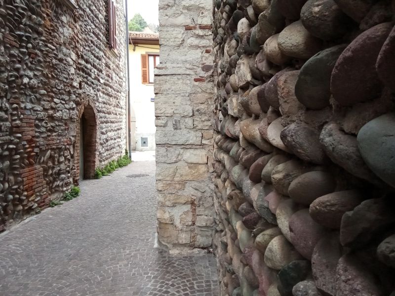 Nembro (fun fact: lombard neve Nèmber) további látnivalói tartozik pl. a Szent Márton-templom, ami a település legfontosabb egyházi épülete (bevallom őszintén, ennek részletes megtekintésétől eltekintettem, tekintettel a napi befogadóképességemre a templomok számát illetően) és a Santa Maria Assunta in Borgo-templom kőkerítése, ami úgy néz ki, mintha teljesen véletlenszerűen összehordott kavicsokból húztak volna fel…